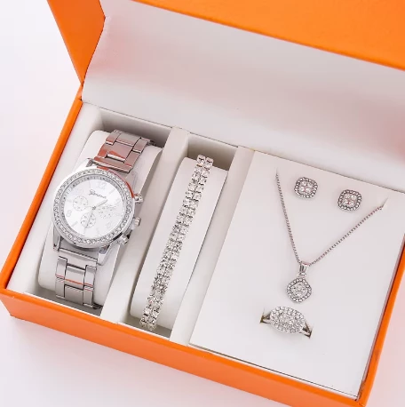 5PCS/Set Women Watch With Bracelet Necklace Earrings And Rings