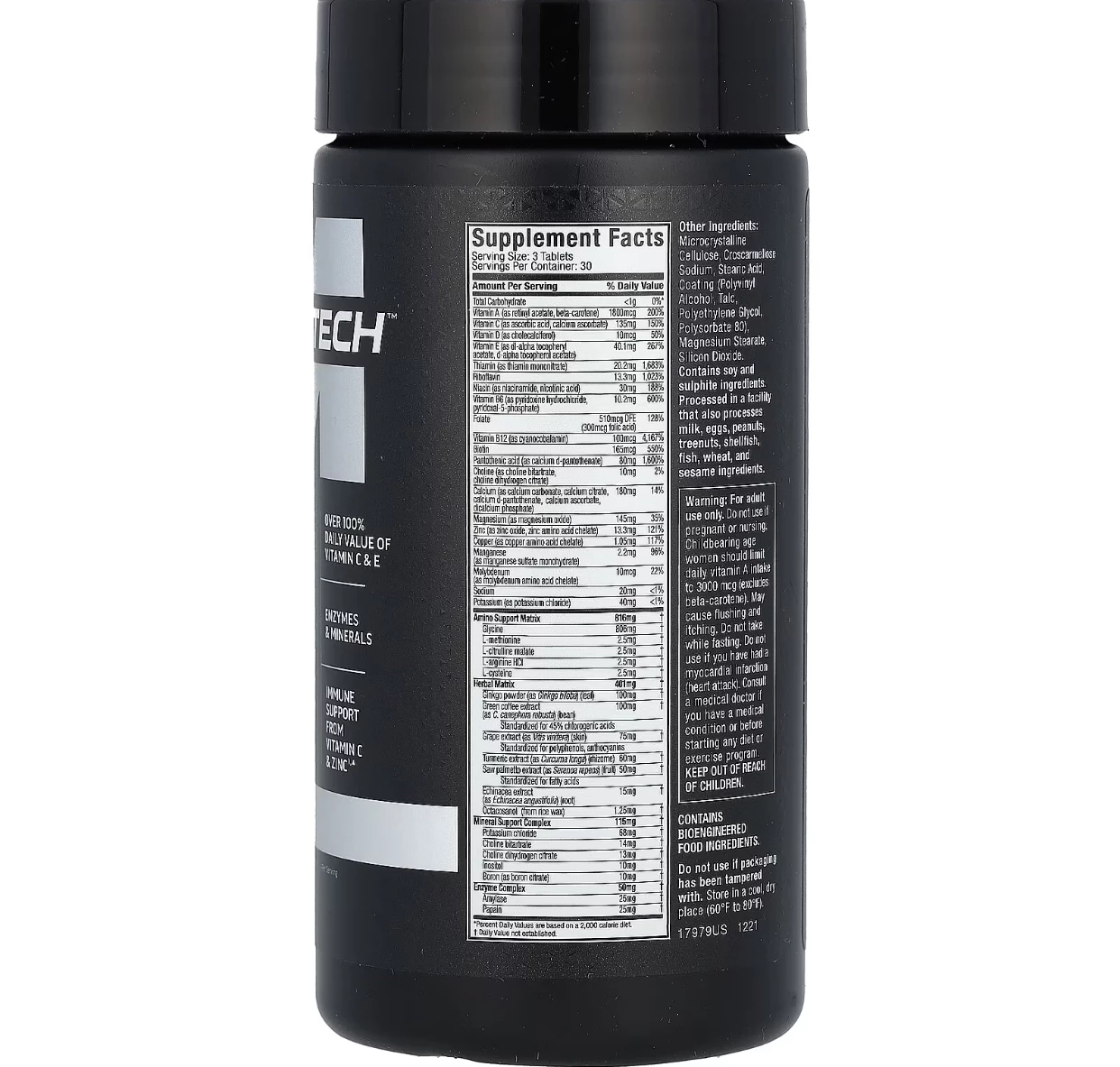 Each serving delivers 18 vitamins and minerals, including 100% or more of your daily requirements for vitamins A, C, E, B6, and B12! It's packed with essential vitamins and minerals, along with an Amino Support Matrix, plus an Herbal Matrix that make this a truly complete formula!